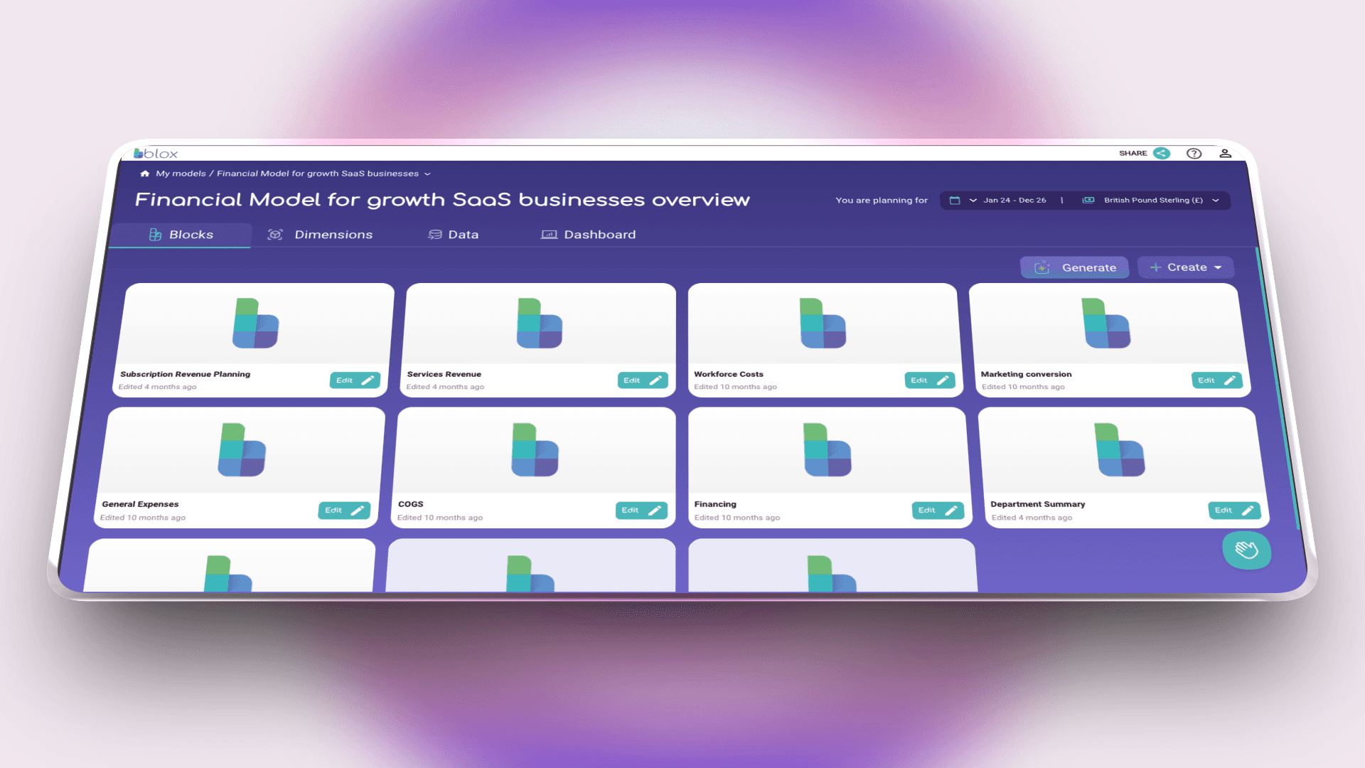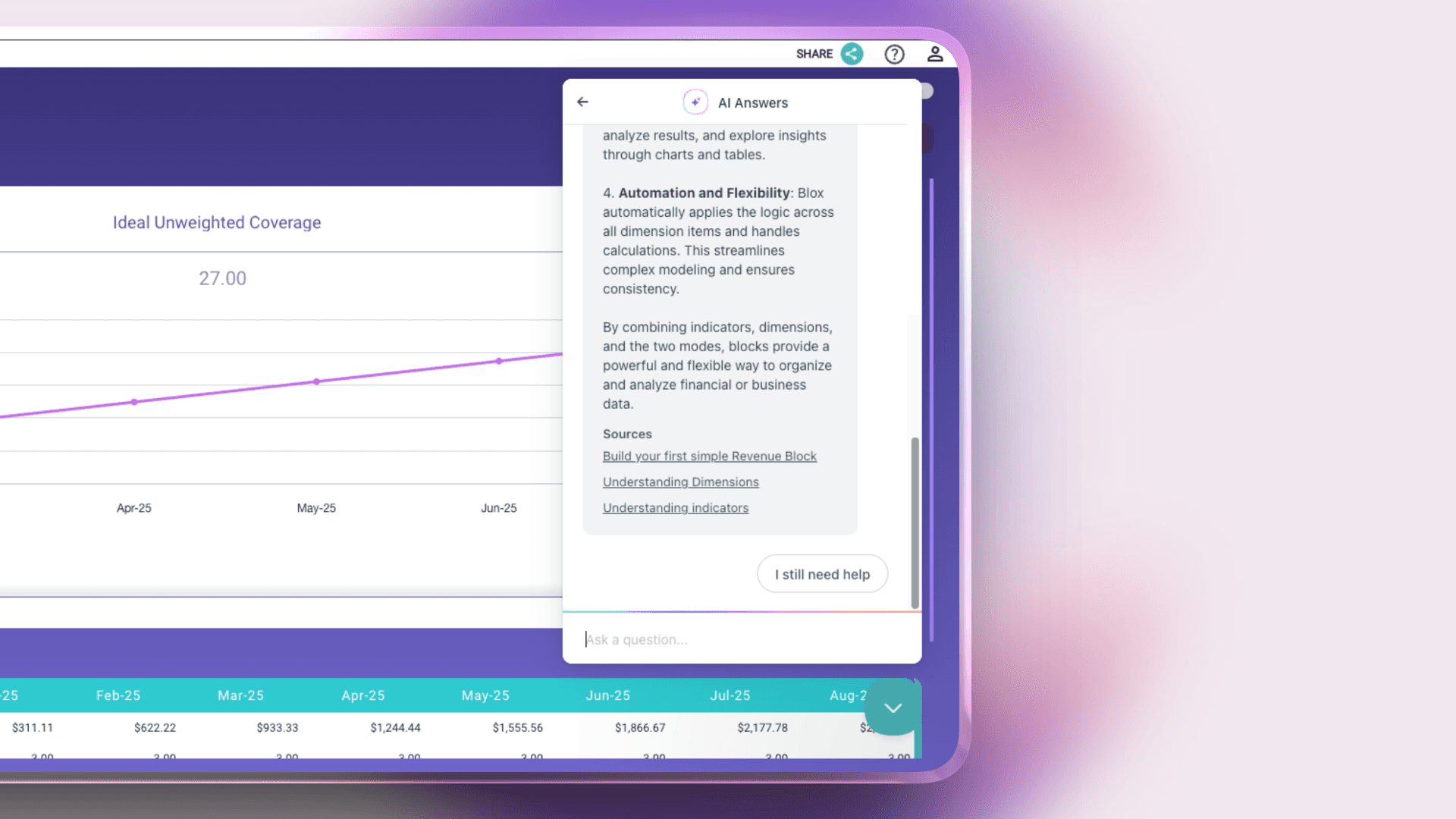 Implemented AI-powered Blox Assistant for custom model generation, allowing users to describe their planning needs in natural language and receive purpose-built calculation frameworks.